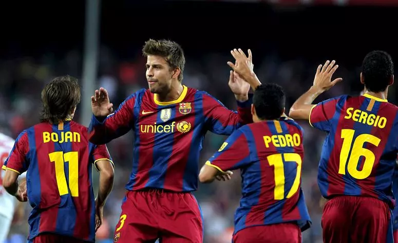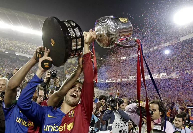 Gerard Piqué, titular indiscutible, petoneja el trofeu que acreditava el Barça com a guanyador del Mundial de Clubs el 2009. Amb aquell títol, el conjunt blaugrana acabava de guanyar els sis títols possibles en un mateix any natural.