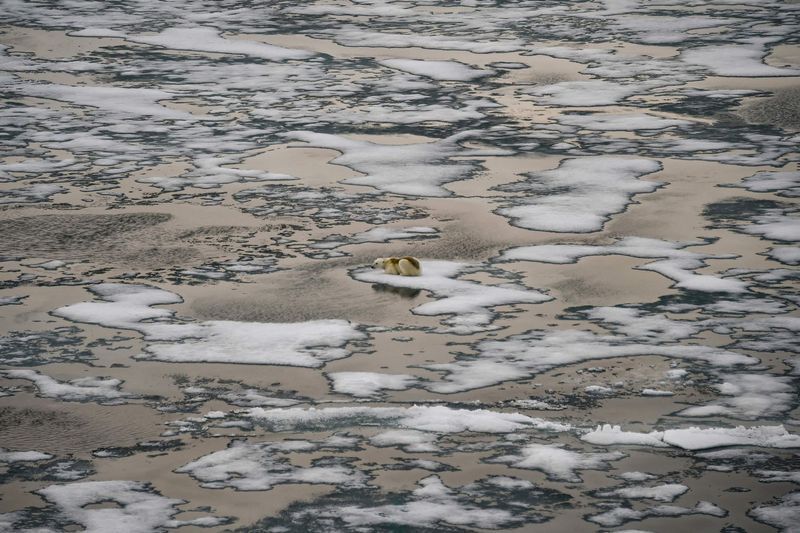 Un ós polar sobre plaques de gel mig foses a l'arxipèlag de la Terra de Franz Josef, a l'Antàrtida, el 16 d'agost del 2021. Segons un informe de l'ONU del mateix mes d'agost, hi ha impactes de la crisi climàtica que ja són irreversibles per segles i mil·lennis. El mateix informe indica que el món superarà segur els 1,5 °C d'escalfament global.
