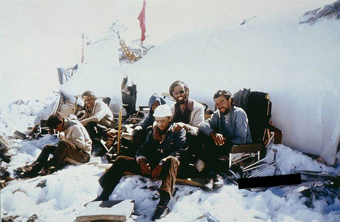 #44 Sobrevivientes del infame accidente aéreo de los Andes, en 1972. Los pasajeros tuvieron que recurrir al canibalismo para sobrevivir 72 días en la nieve