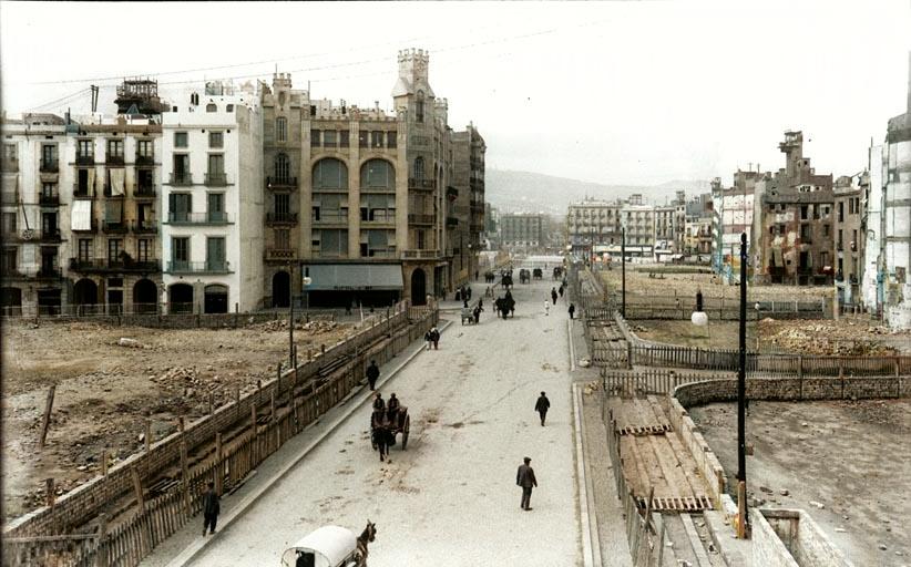 Finalment, el 1913 la Via Laietana quedarà oberta a la circulació, i es començaran a construir alguns dels edificis que hi ha en l'actualitat. Brangulí, 1913