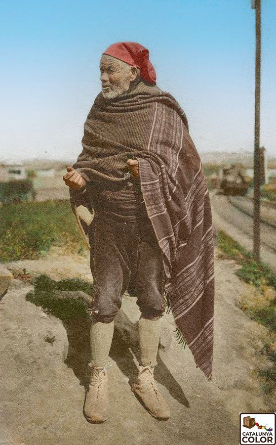 Pagès de Montblanc a la dècada de 1910, vestit a la manera tradicional d'abans de la Revolució Industrial. Lucien Roisin
