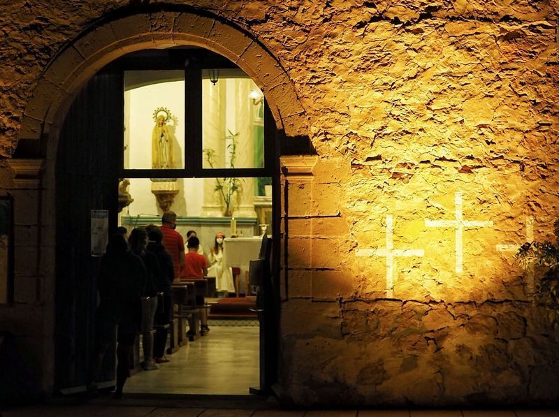 Vista des de l'exterior de la missa que se celebrava a l'església de Sant Ferran