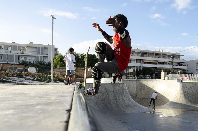 Un adolescent fa virolles en l'skatepark de Sant Francesc Xavier