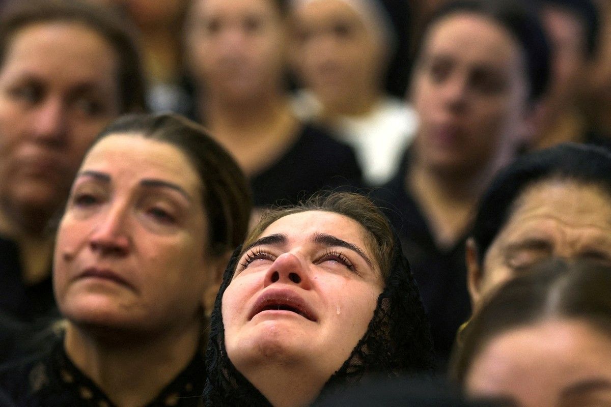 Una cristiana iraquí llora mientras asiste a una misa tras un incendio fatal en una celebración de boda, en la Iglesia de la Gran Inmaculada, en Hamdaniya, Irak, el 28 de septiembre de 2023. Foto: REUTERS/Ahmed Saad
