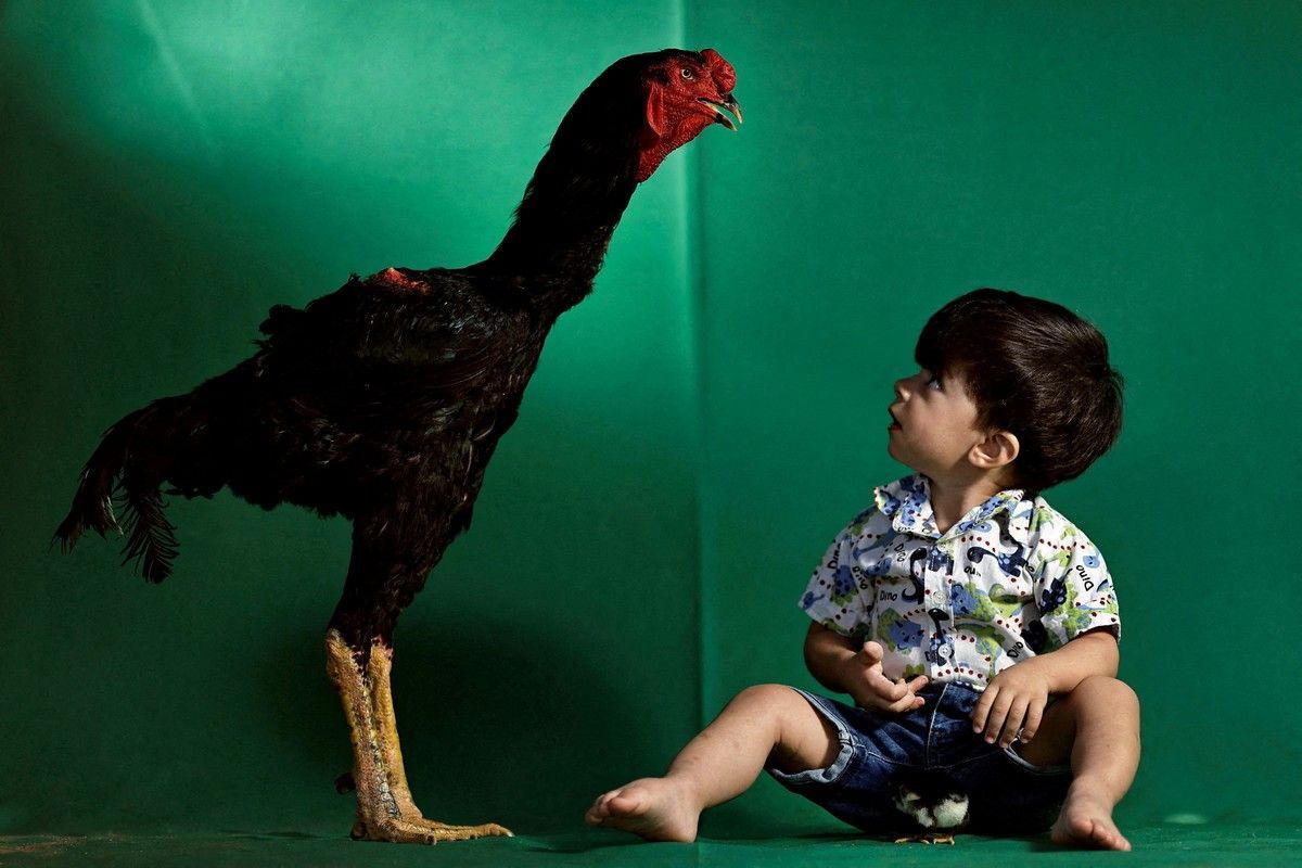 Un urubu indio gigante llamado Varapau junto a Gabriel Pereira, un niño de un año y 9 meses, en Formosa, estado de Goiás, Brasil, 1 de septiembre de 2023. Foto: REUTERS/Ueslei Marcelino