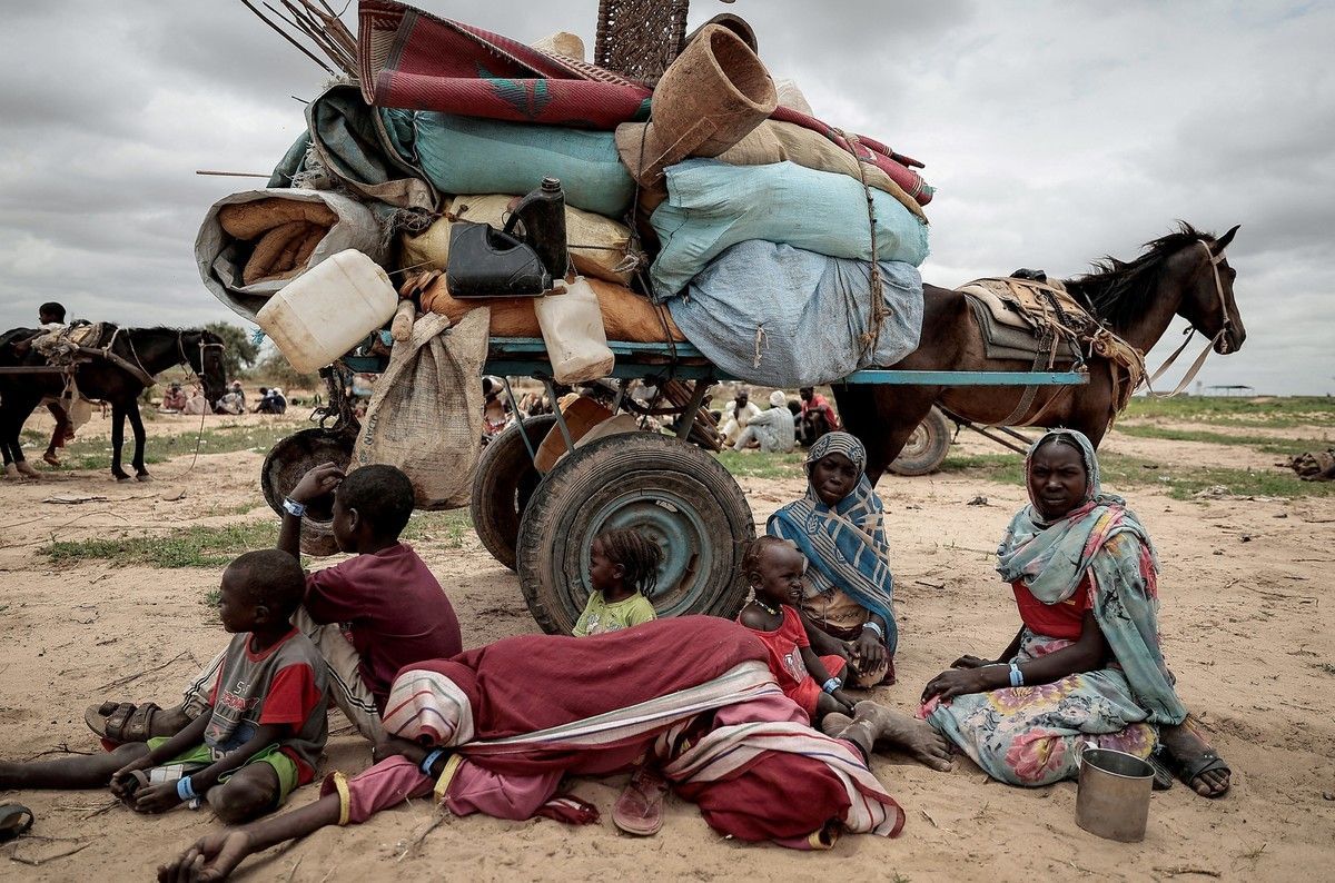 Una familia sudanesa que huyó del conflicto en Murnei, en la región de Darfur, mientras espera ser registrada por ACNUR al cruzar la frontera entre Sudán y Chad en Adre, Chad, el 26 de julio. 2023. Foto: REUTERS/Zohra Bensemra