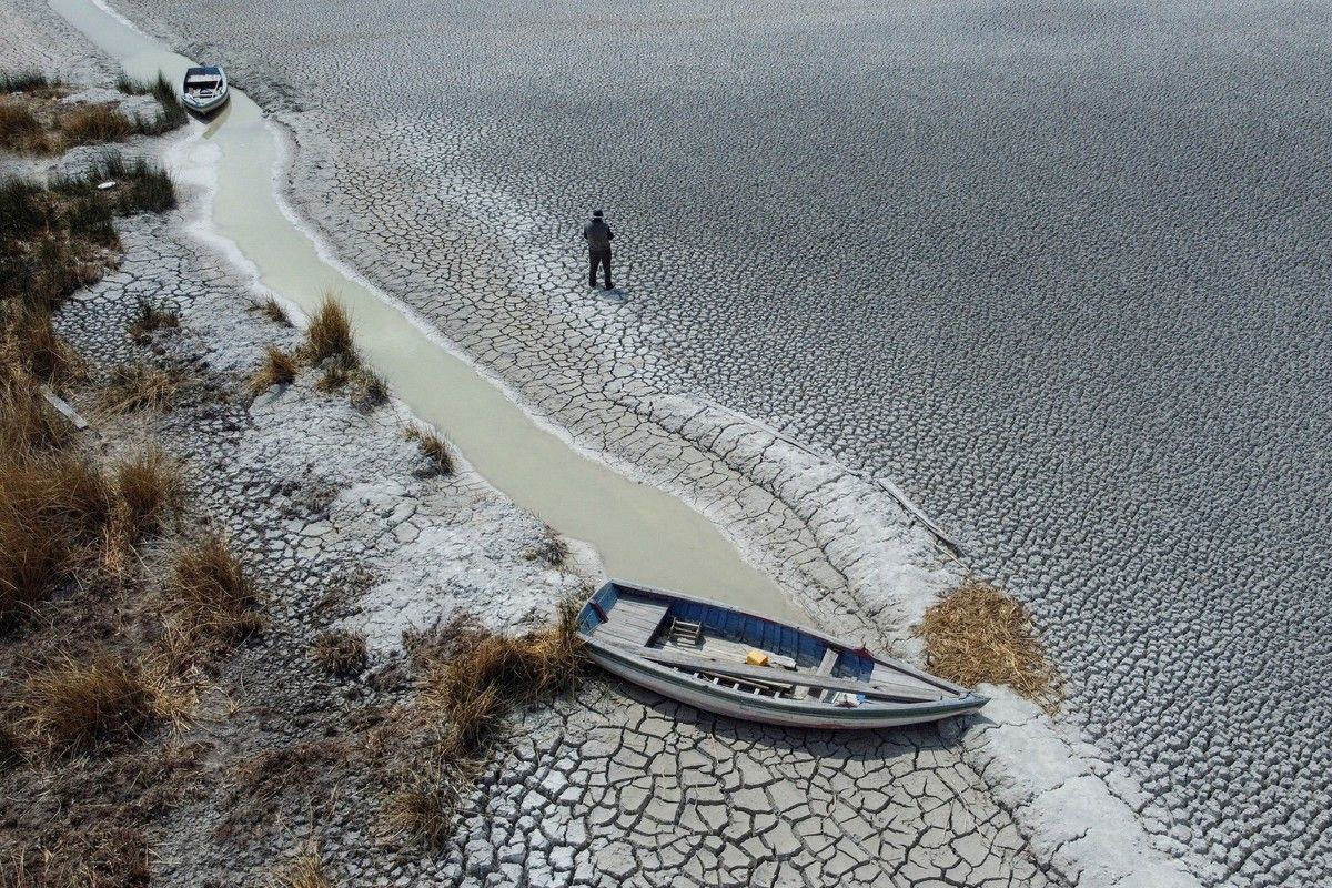 Manuel Flores camina sobre un área seca que muestra la caída del nivel del lago Titicaca, la cuenca de agua dulce más grande de América Latina, a medida que se acerca a niveles récord, en la isla Cojata, Bolivia. Foto: REUTERS/Claudia Morales