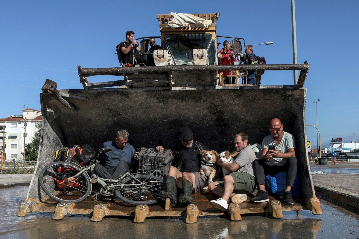Los lugareños son evacuados en una excavadora de un área inundada después de la tormenta Daniel en Larissa, Grecia, el 10 de septiembre de 2023. Foto: REUTERS/Elias Marcou