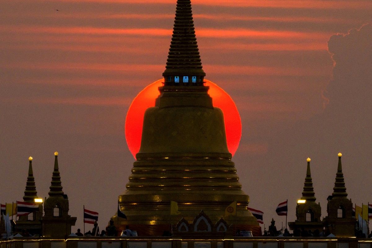 El sol se pone detrás del templo Wat Saket, o Monte Dorado en Bangkok, Tailandia, 19 de marzo de 2023. Foto: REUTERS/Athit Perawongmetha