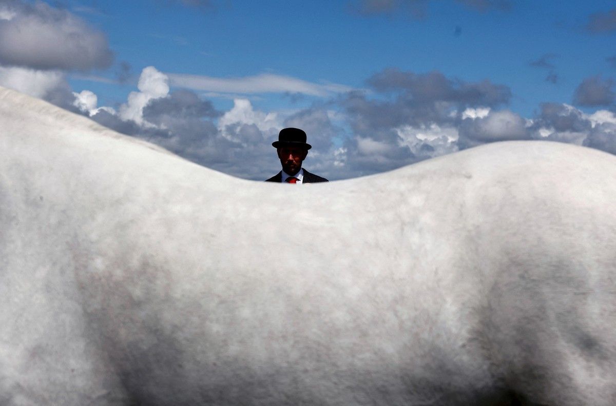 El juez Vincent Holian observa durante la elección de potra de un año en el Roundstone Connemara Pony Show, en la aldea de Roundstone, Irlanda, en el condado de Galway, 9 de julio de 2023. Foto: REUTERS/Clodagh Kilcoyne