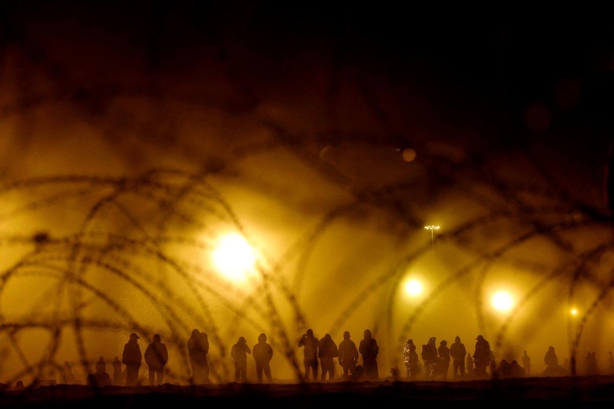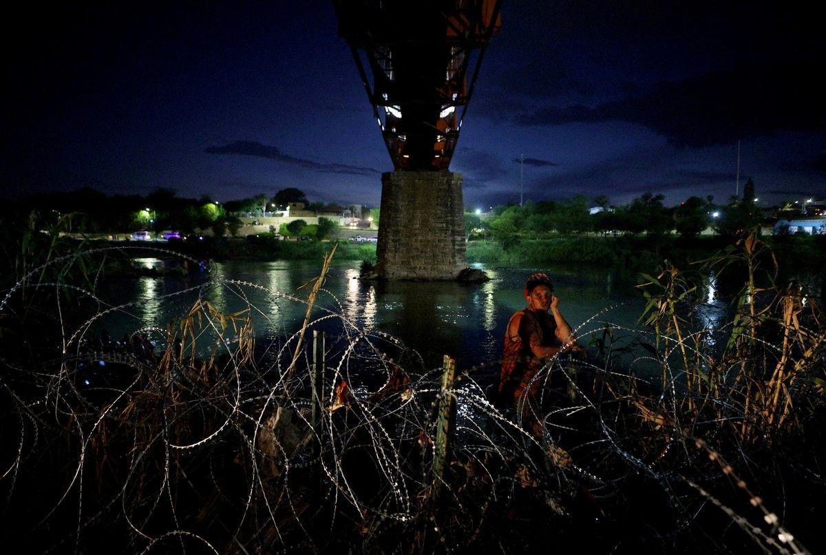 Un migrante de Venezuela, parte de un gran grupo que cruzó después del atardecer, espera detrás de alambre de púas después de cruzar el Río Grande hacia los Estados Unidos en Eagle Pass, Texas, EE. UU., 26 de septiembre de 2023. Foto: REUTERS/Brian Snyder
