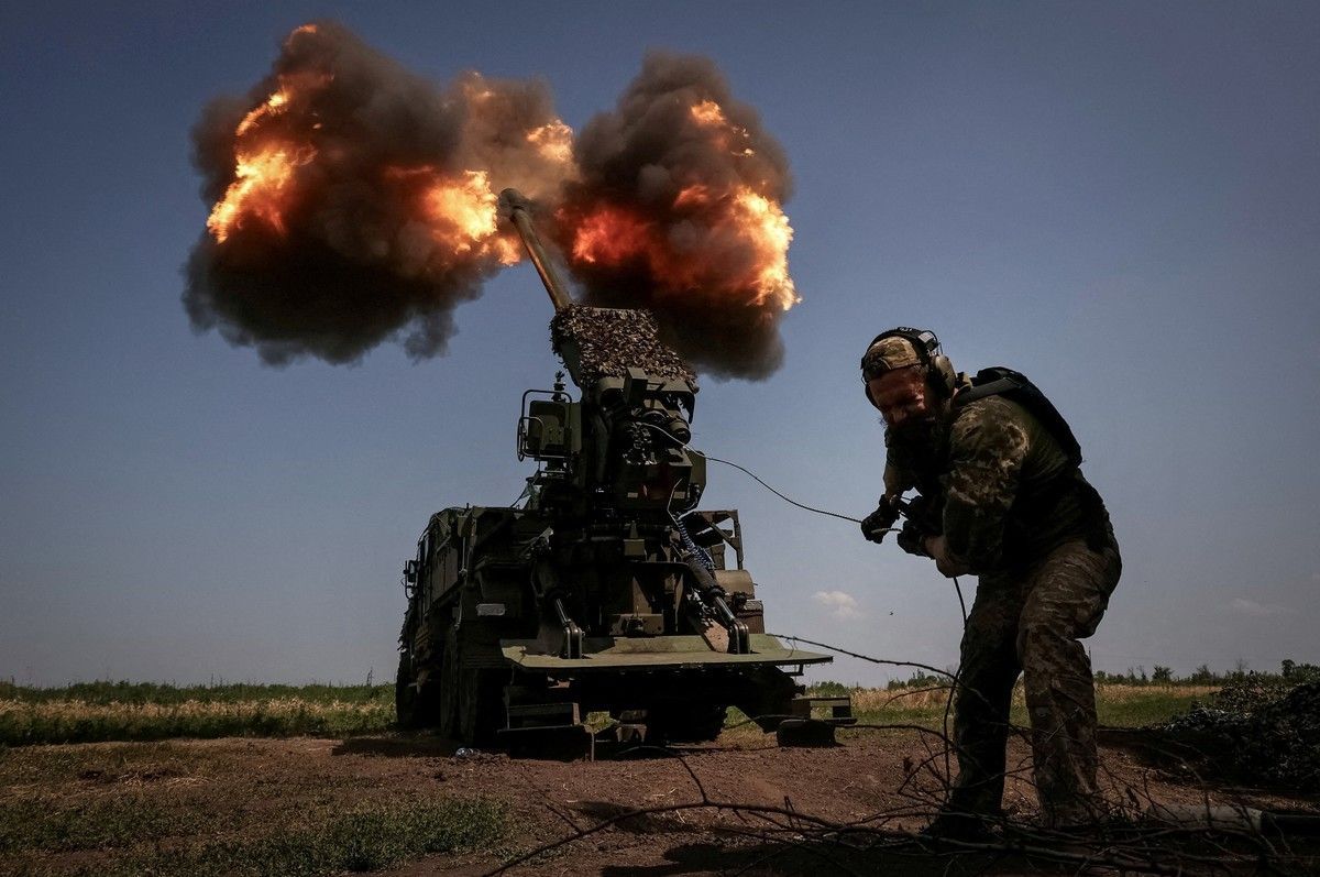 Un militar ucraniano de la 57.a Brigada Separada de Infantería Motorizada Kost Hordiienko dispara un obús autopropulsado 2S22 Bohdana hacia las tropas rusas, en medio del ataque de Rusia a Ucrania, el 5 de julio de 2023. Foto: REUTERS/SOFIIA GATILOVA