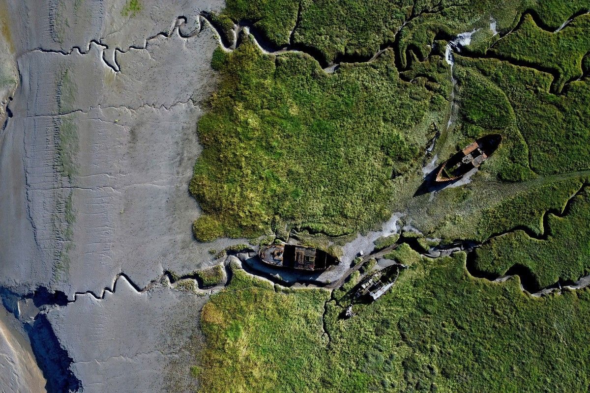 Los arrastreros de pesca en descomposición conocidos colectivamente como The Fleetwood Wrecks se ven durante la marea baja en las orillas del río Wyre en Fleetwood, Gran Bretaña, el 26 de septiembre de 2023. Foto: REUTERS/Lee Smith