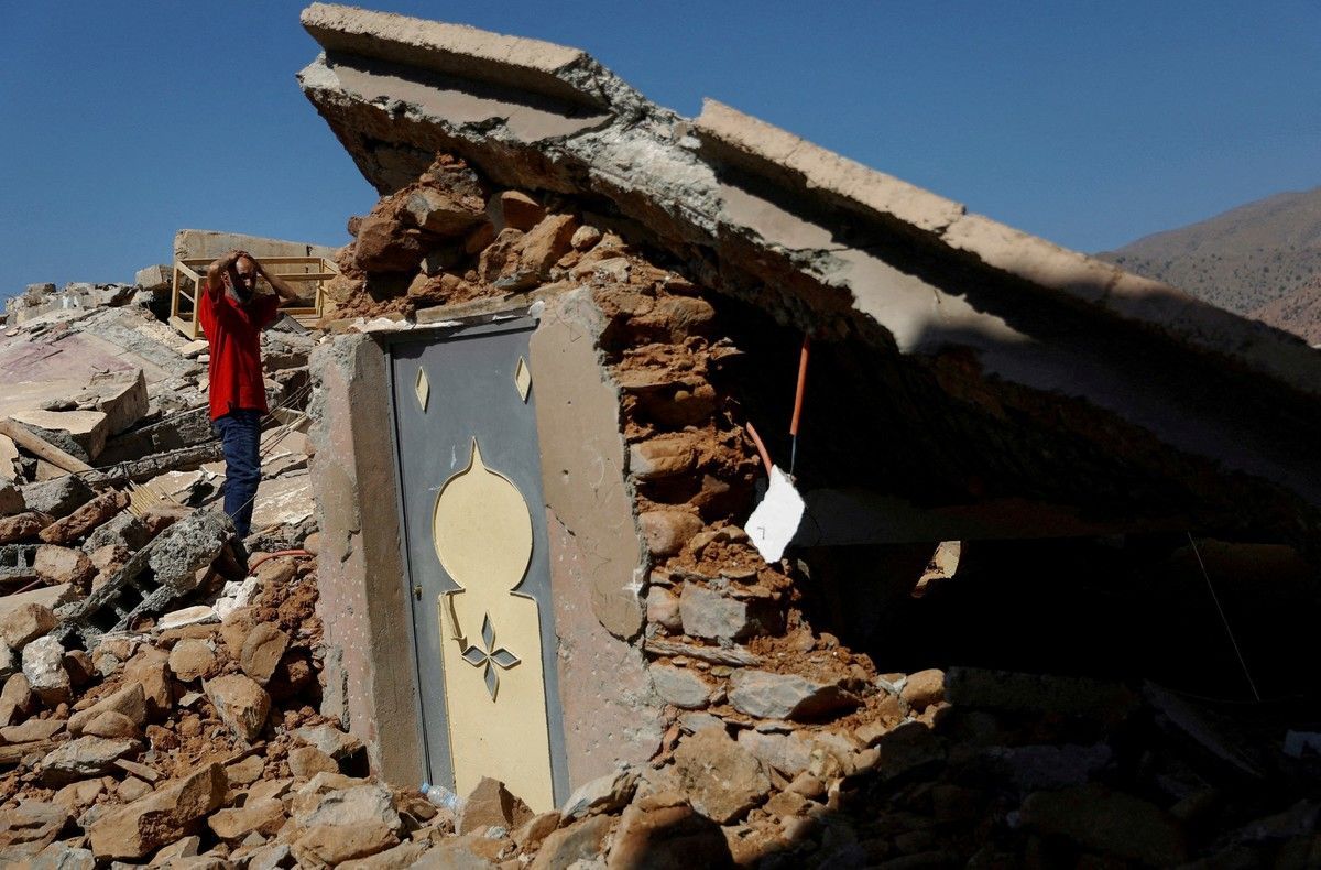 Ibrahim Ait Said reacciona mientras se encuentra en el lugar de su casa dañada después de perder a 10 familiares en el mortal terremoto, en Talat N'Yaaqoub, Marruecos, el 13 de septiembre de 2023. Foto: REUTERS/Hannah McKay