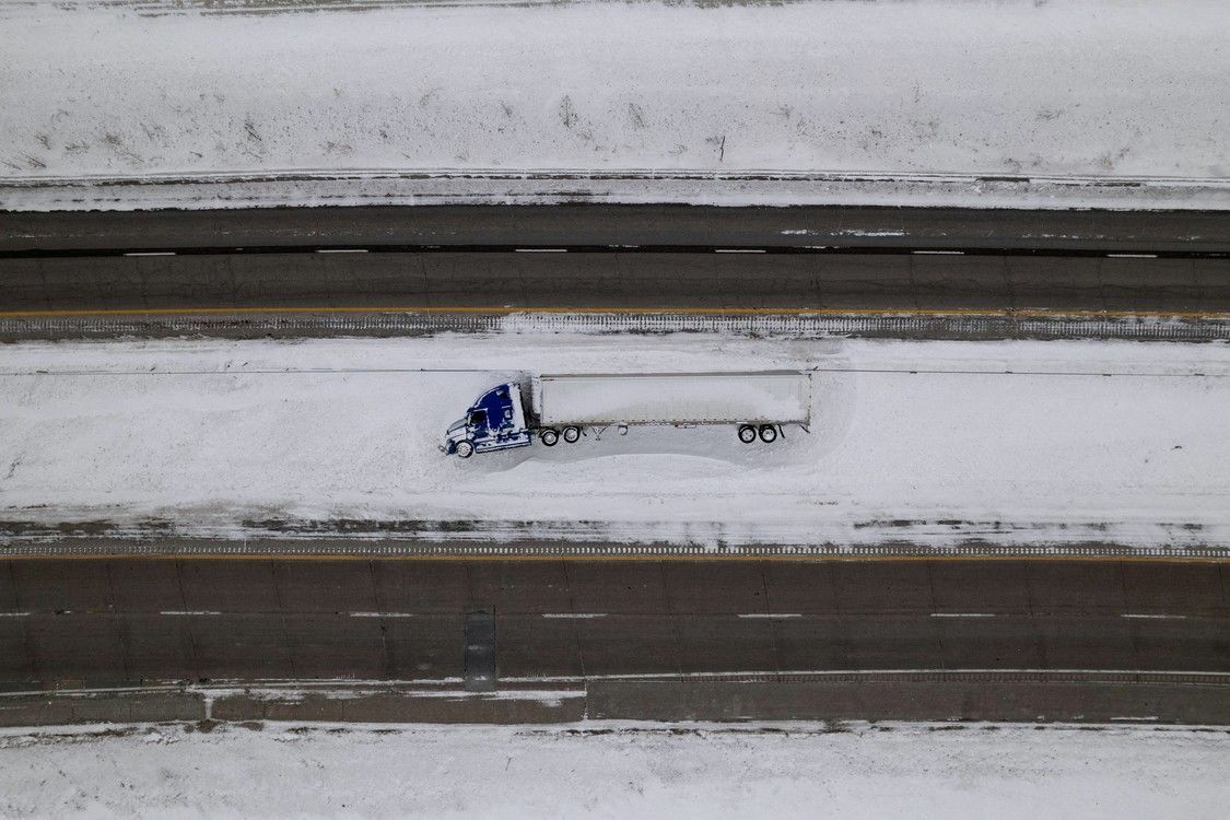 Un camión semirremolque se encuentra volcado y varado en medio de temperaturas bajo cero, antes de la votación del caucus estatal de Iowa, cerca de Van Meter, Iowa, Estados Unidos, el 15 de enero de 2024. Foto: REUTERS/Cheney Orr