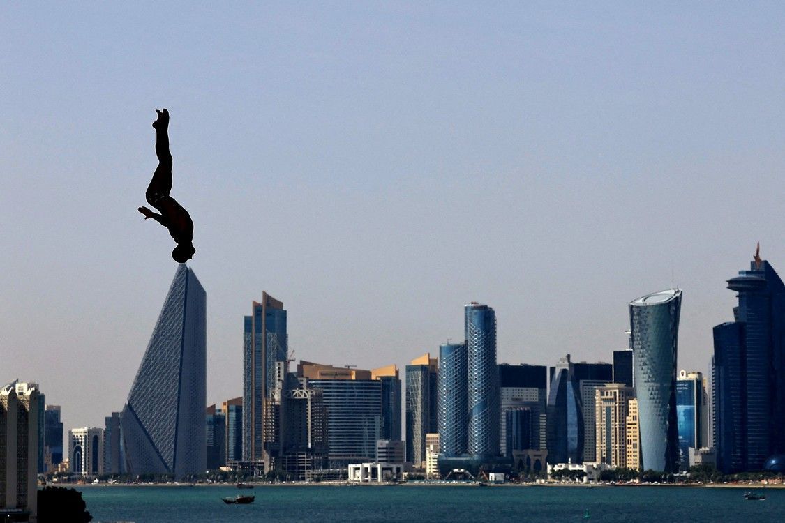Víctor Ortega Serna de Colombia en acción durante la ronda masculina de 27 m de saltos de altura en el Campeonato Mundial de Natación en Doha, Qatar, 15 de febrero de 2024. Foto: REUTERS/Evgenia Novozhenina