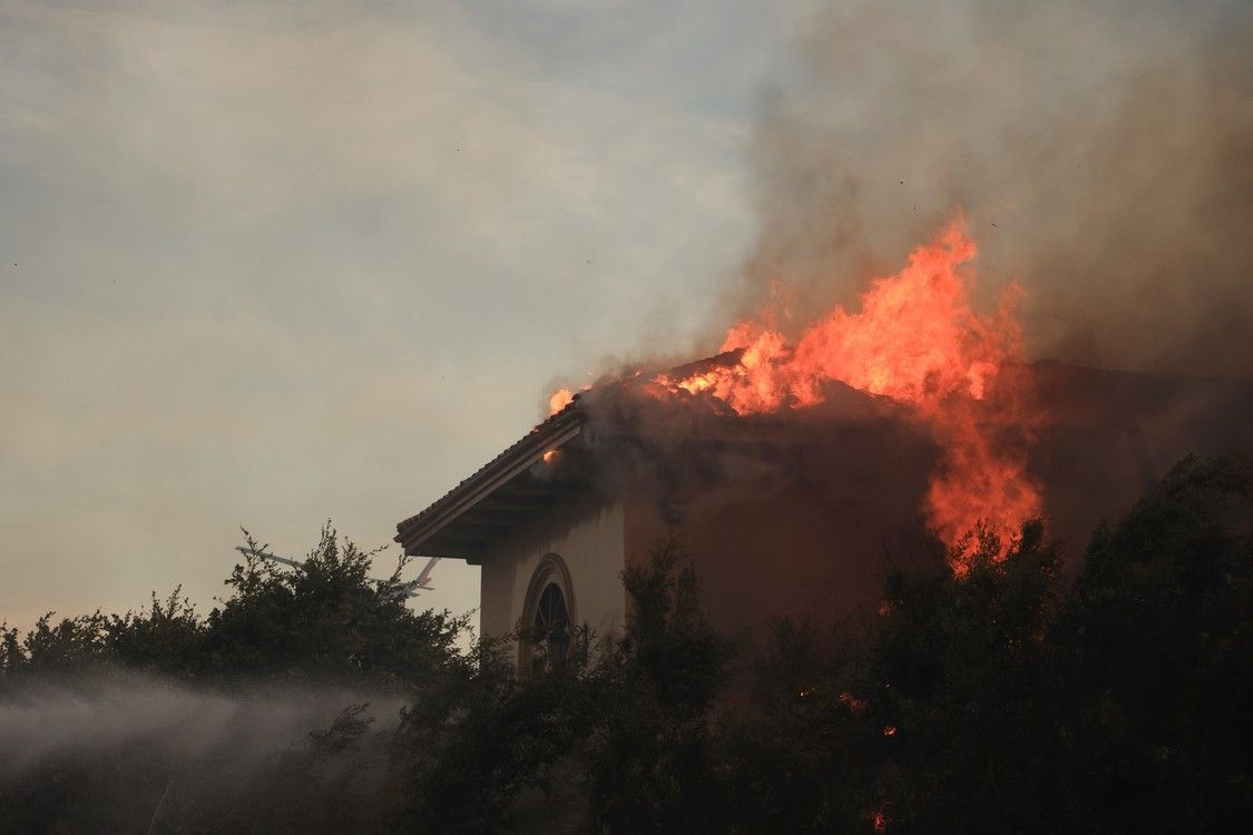 Propiedad dañada en llamas, mientras el humo se eleva por el incendio en Camarillo, California, Estados Unidos, el 6 de noviembre de 2024. Foto: REUTERS/David Swanson