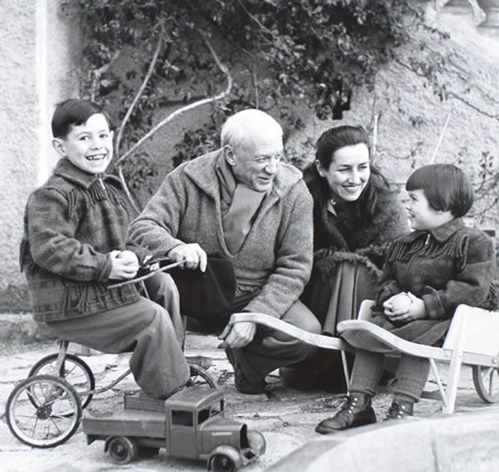 Pablo Picasso y Francoise Gilot con algunos niños, década de 1950