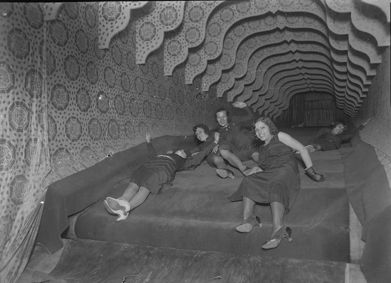 Cinc models al tobogan de Maricel Park, el «Gran Parc d’Atraccions de Montjuïc», el 1930.