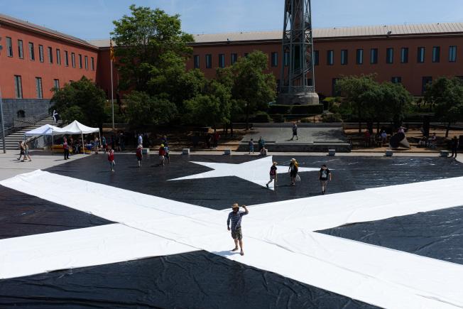 22/05/2022. L'entitat Catalans per la Independència desplega a Palafrugell "la bandera negra" independentista "més gran del món" a la localitat de Palafrugell. / Foto: David Borrat.