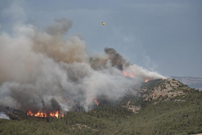 15/06/2022. Els Bombers de la Generalitat treballen en l'extinció de vuit incendis, encara que són dos els de més magnitud, el d'Artesa de Segre (Lleida), que ja afecta unes 500 hectàrees de vegetació, i el de Corbera d'Ebre (Tarragona), on es treballa en una àrea de 200 hectàrees. / Foto: Ramon Gabriel.