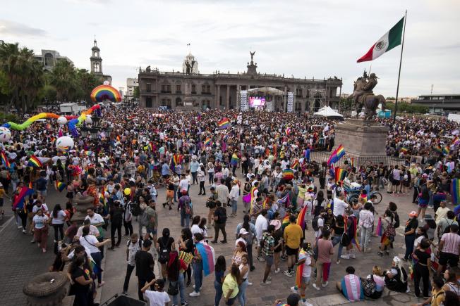 18/06/2022. Centenars de persones participen en la marxa de l'orgull gai a la ciutat de Monterrey, a l'estat de Nuevo León. Col·lectius i simpatitzants de la comunitat LGBTQ+ es van manifestar a diverses ciutats de Mèxic per exigir respecte als seus drets, erradicar la discriminació i demanar reconeixement legal a la diversitat del seu gènere. / Foto: Miguel Sierra.