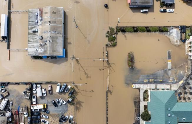 14/03/2023. Les parts del centre de la ciutat de Pajaro romanen inundades després que un dic es va aturar al riu Pajaro al comtat de Monterey com el nord de Califòrnia, per a una altra ronda de tempestes a Pajaro. Molts comtats de Califòrnia estan sota advertiments d'inundació. / Foto: Lipo Ching / Efe.