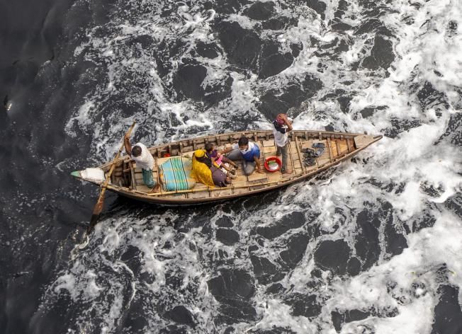 14/03/2023. Un barquer de Bangla Desh creua el riu Buriganga en el Dia Internacional d'Acció pels Rius a Dhaka. El Dia Internacional d'Acció pels Rius se celebra anualment el 14 de març per promoure la conscienciació de la importància dels sistemes fluvials al planeta terra. Segons l'Organització Mundial de la Salut (OMS), el Buriganga és un dels rius més contaminats del món. Això és causat pels més de 60.000 metres cúbics de residus tòxics que la ciutat aboca cada dia a les seves aigües. / Foto: Monirul Alam / Efe.