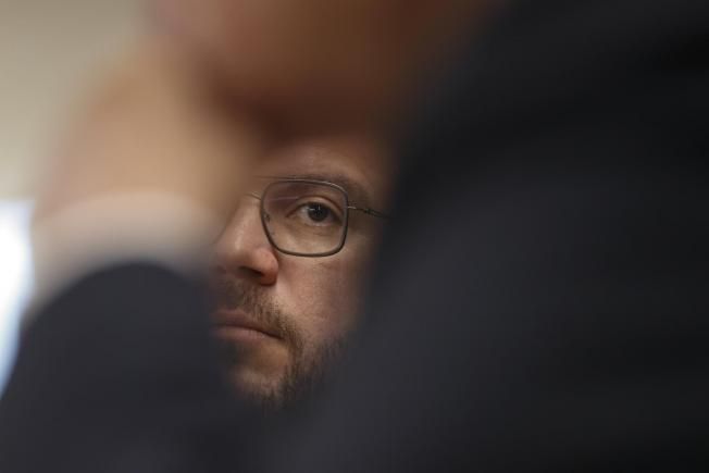 21/03/2023. El president de la Generalitat, Pere Aragonès, durant la reunió amb la delegació d'europarlamentaris, que investiga l'ús del sistema Pegasus per espiar l'independentisme català, celebrada a Madrid. / Foto: Mariscal / Efe.