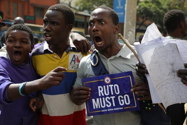 20/03/2023. Els partidaris del partit Azimio canten eslògans i sostenen un cartell que diu "Ruto Must Go" durant una manifestació contra el cost de la vida i l'administració del president William Ruto. / Foto: John Ochieng / Europa Press.