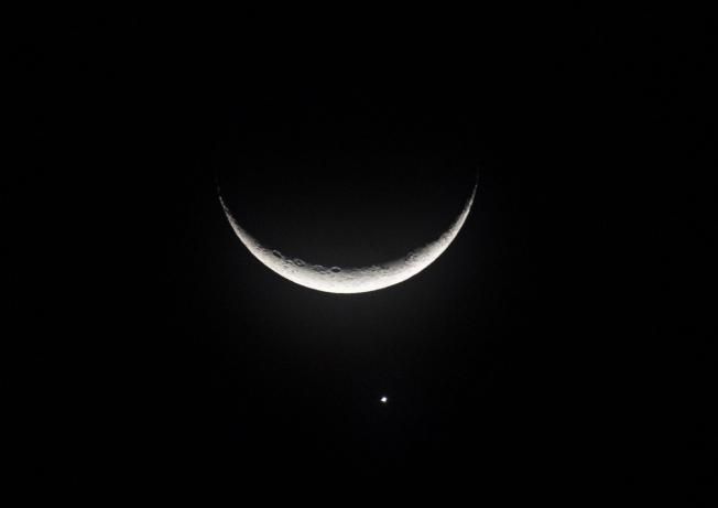 24/03/2023. La Lluna i el planeta Venus s'observen al cel de Katmandú. Segons Jayanta Acharya, Professor Associat d'Astronomia, la vista més propera de la Lluna i Venus no només és estranya, sinó també una bona oportunitat de recerca per als estudiants d'astronomia. / Foto: Narendra Shrestha / Efe.