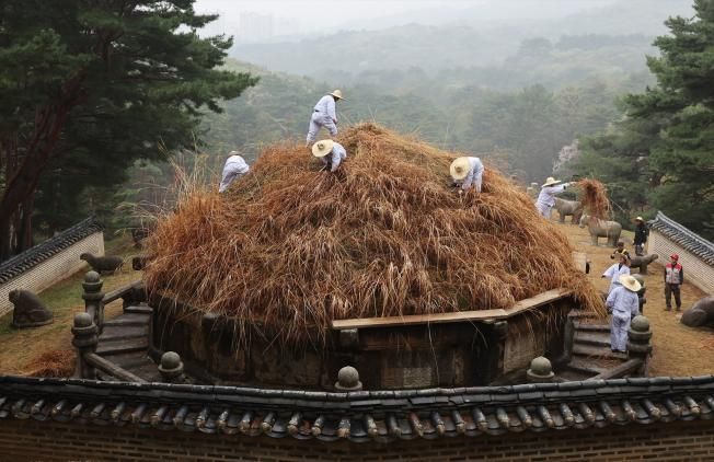06/04/2023. Els treballadors tallen l'herba a la tomba de Geonwonneung del rei Taejo, fundador de la dinastia Joseon, per commemorar la festa d'Hansik. / Foto: dpa / Europa Press.