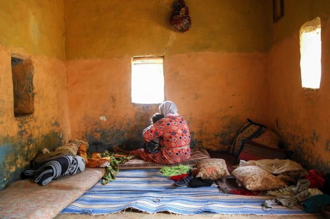06/04/2023. Jaiat, l'àvia de la nena S., que va ser violada amb 11 anys i es va quedar embarassada d'un dels seus violadors, sosté en braços el seu besnét. Per arribar a la casa, un conjunt de quatre senzilles construccions de tova, cal recórrer 30 quilòmetres d'una carretera estreta des de la ciutat més propera, i després dues més per un camí de sorra vermellosa. Allà viu S., la nena de 13 anys que té en suspens el Marroc. I a uns quants metres, els violadors. S. en tenia només 11 quan va ser violada repetidament per tres homes, va quedar embarassada i va tenir un nadó. Superada la por de les represàlies, el seu pare va denunciar, però la sentència dictada fa uns dies va caure com un totxo: entre un any i mig i dos anys de presó per als agressors. Segons un estudi elaborat el 2020 pel col·lectiu feminista Masaktach (No callo) analitzant 1.169 casos dels 21 jutjats de primera instància del Marroc, un 80% dels condemnats per violació rep una pena inferior a 5 anys. A la pràctica, estan a la presó una mitjana de 3 anys i 1 mes. / Foto: María Traspaderne / Efe.