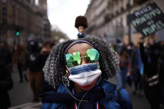 06/04/2023. Uns manifestants envaeixen la seu de Black Rock prop de l'Òpera durant una protesta contra la reforma de les pensions a París. / Foto: Julien Mattia / Europa Press.