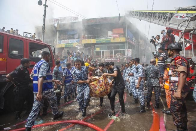 05/04/2023. Els bombers encara intenten extingir el foc, un dia després que es produís un incendi al mercat de teles del Complex Comercial Bangabazar, a Dhaka. Segons el Servei de Bombers i Defensa Civil, es va produir un incendi al mercat de teles del Complex Comercial Bangabazar. A la llista, cinquanta unitats d'extinció d'incendis van treballar amb el suport de l'exèrcit, la marina, la força aèria i els equips de la Guàrdia Fronterera de Bangladesh per controlar l'incendi. La raó darrere de l'incendi encara no s'ha determinat i no es van reportar víctimes immediates. El servei de bombers i Dhaka South City Corporation van formar dos comitès separats per esbrinar la causa de l'incendi. / Foto: Monirul Alam / Efe.