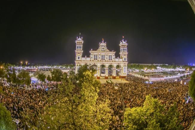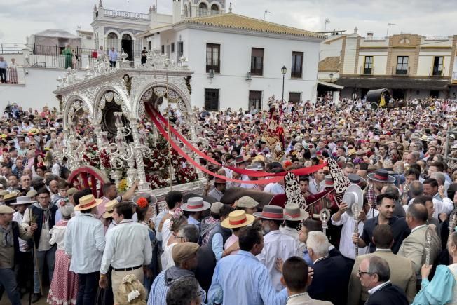 27/05/2023. Ambient al llogaret del Rocío en on les germandats van passant una a una per davant de l'ermita fent la seva presentació. La presentació és una tradició que des del 2013 es realitza en dues jornades, atesa la gran quantitat de germandats filials amb què compta la Matriu, que ja són 127. / Foto: David Arjona / Efe.