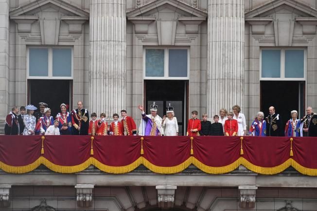 06/05/2023. Els reis coronats reis Carles III i Camil·la, així com altres membres de la família reial, al balcó del palau de Buckingham saludant les multituds que es han apropat després de la cerimònia de coronació. / Foto: Neil Hall/ Efe.