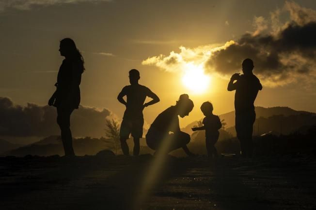 06/05/2023. Una família gaudeix del capvespre a la platja de Camboinhas, a la ciutat de Niterói. / Foto: Antonio Lacerda / Efe.