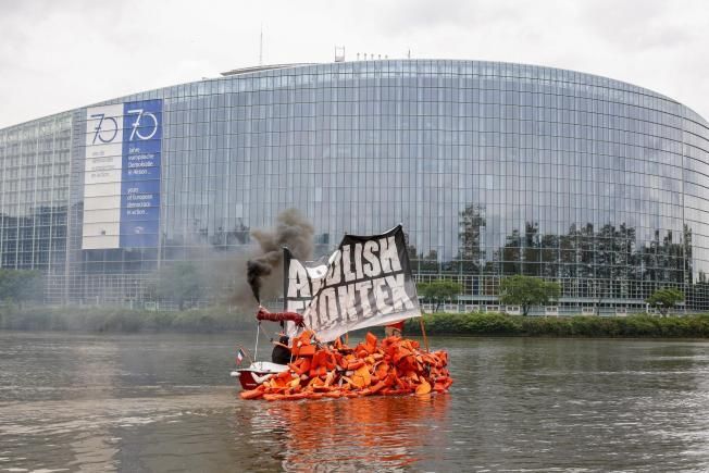 11/03/2023. La policia utilitza un canó d'aigua contra els activistes del grup Extinction Rebellion (XR) que han bloquejat la carretera coneguda com Utrechtsebaan, a la Haia. / Foto: Sem van der Wal / Efe.