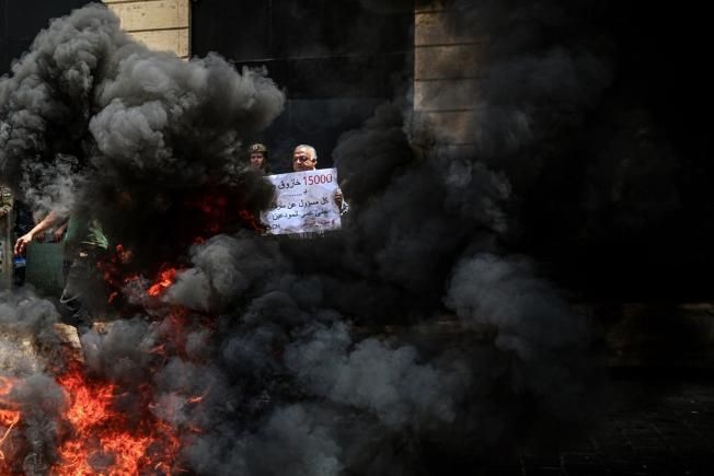 09/05/2023. Un dipositant bancari libanès sosté un cartell darrere del fum de pneumàtics cremats durant una protesta contra les restriccions informals a les retirades d'efectiu vigents des de fa anys i el deteriorament ràpid de les condicions econòmiques. / Foto: Marwan Naamani / Europa Press.