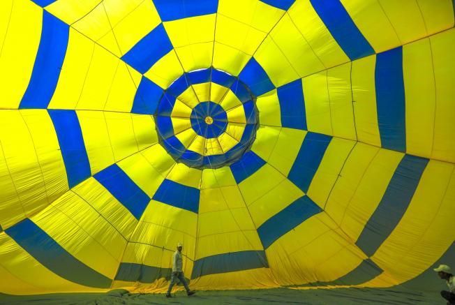 12/05/2023. Un treballador camina a l'interior d'un globus aerostàtic abans d'un passeig per l'aire durant un esdeveniment organitzat pel Departament de Turisme local amb motiu de la cimera del G20, a Srinagar, capital estival de la Caixmir índia. / Foto:Farooq Khan / Efe.