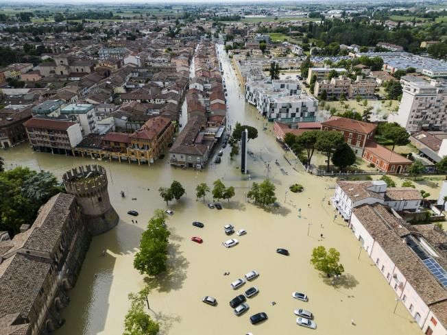 18/05/2023. Vista aèria dels carrers inundats després del desbordament d'un riu a Lugo. Parts de la localitat de Lugo estaven sota un metre d'aigua després del desbordament dels rius Senio i Santerno enmig de fortes pluges. / Emanuele Valeri / Efe.