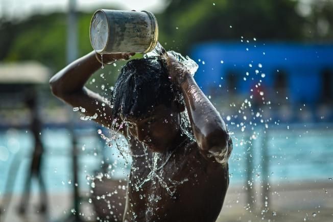 17/05/2023. Un noi es refresca en una jornada de calor a Chennai. D'acord amb els serveis meteorològics locals, Chennai va registrar una temperatura màxima de 42,7 graus dimarts passat, que va suposar el dia més calorós del que va de l'any al país. / Foto: Idrees Mohamed / Efe.