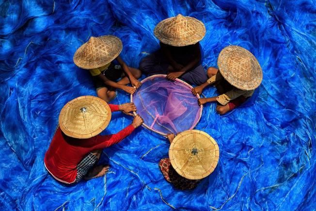 21/05/2023. Els pescadors classifiquen xarxes de pesca blaves a la zona de Canning de Sundarbans. / Foto: Avishek Das / Europa Press.