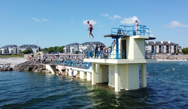 31/5/2023. La gent es refresca llançant-se al mar a Salthill, Galway. / Foto: Niall Carson / Europa Press.